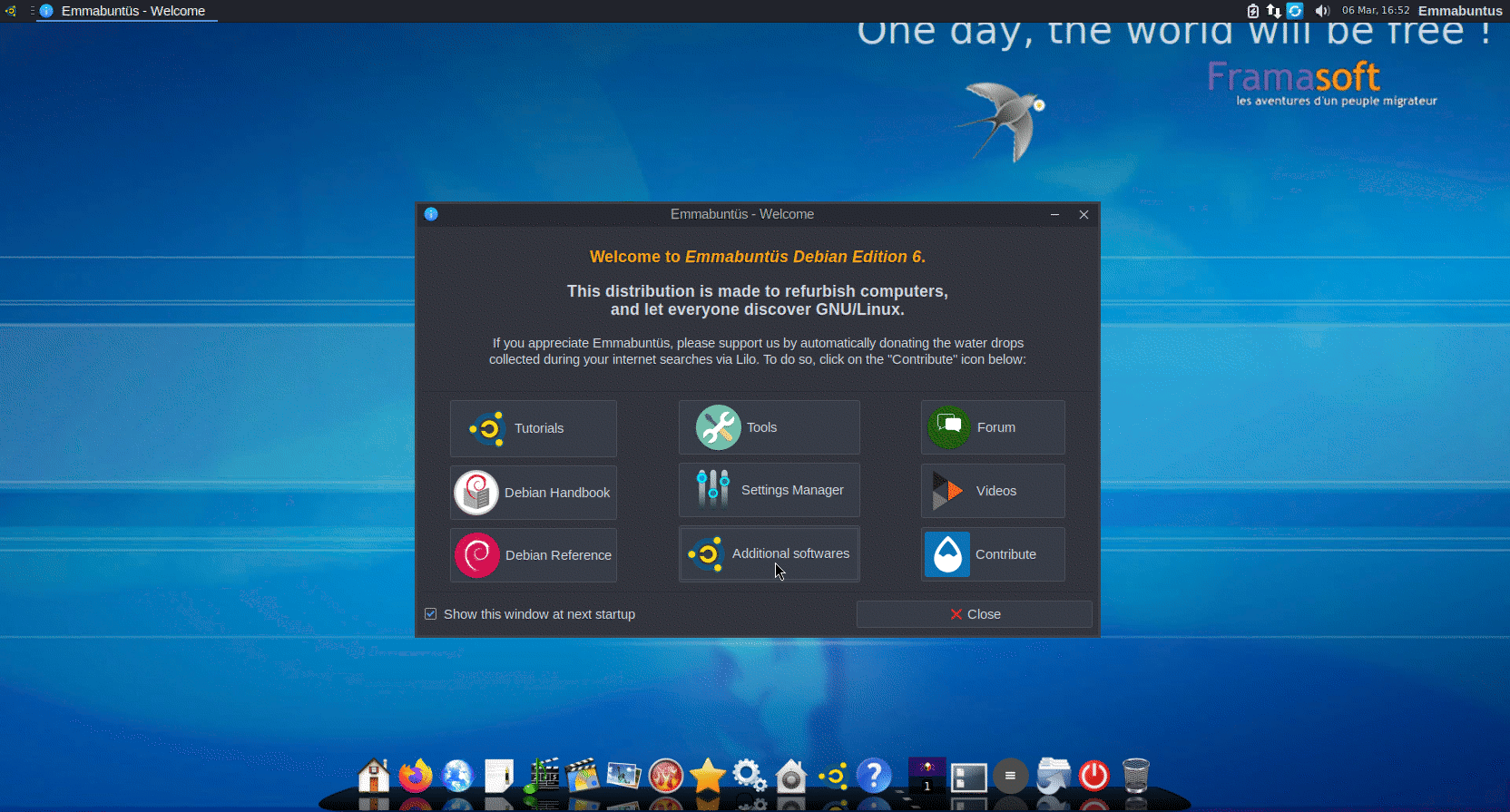 Nous tenons tout particulièrement à remercier les sites de Framasoft et de Debian pour leur admirable travail, sans lesquels cette distribution n’aurait pas été possible.